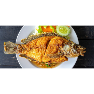 Whole fish seasoned with sea salt and lime then fried crisp fish.Enjoy this vibrant seafood delight today now.